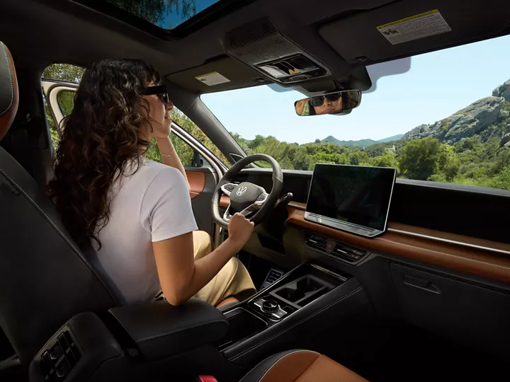 Inside, the 2025 VW Tiguan is all about space, comfort, and flexibility. Enjoy premium options like ventilated front seats with massage function and diamond-stitched leather seating. A panoramic sunroof opens up the cabin with light and sky views, while dual-row heated seats keep everyone cozy.