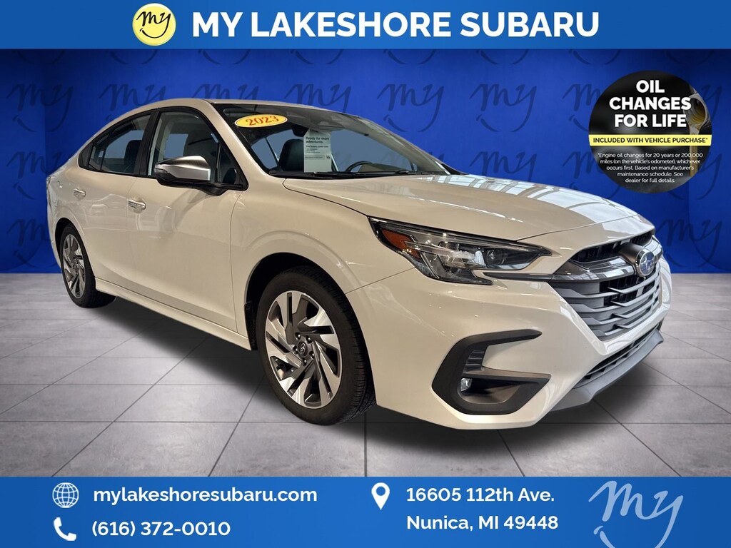 Legacy Touring XT, Crystal White Pearl, *ALL WHEEL DRIVE*, *APPLE CARPLAY & ANDROID AUTO*, *BACKUP CAMERA*, *BLIND SPOT ALERT*, *BLIND SPOT MONITORING*, *EYESIGHT Driver Assist*, *HEATED REAR Seats*, *HEATED STEERING WHEEL*, *LANE DEPARTURE WARNING*, *LEATHER HEATED POWER SEATS*, *LOCAL TRADE*, *MOONROOF*, *OIL CHANGES for LIFE*, *PREMIUM SOUND*, Exterior Auto-Dimming Mirror w/Approach Light, Tech Package 2, Wireless Charger, Woodgrain Interior Trim Kit. Certified. Crystal White Pearl 2023 Subaru Legacy Touring XT AWD Lineartronic CVT 2.4L 4-Cylinder DOHC 16V