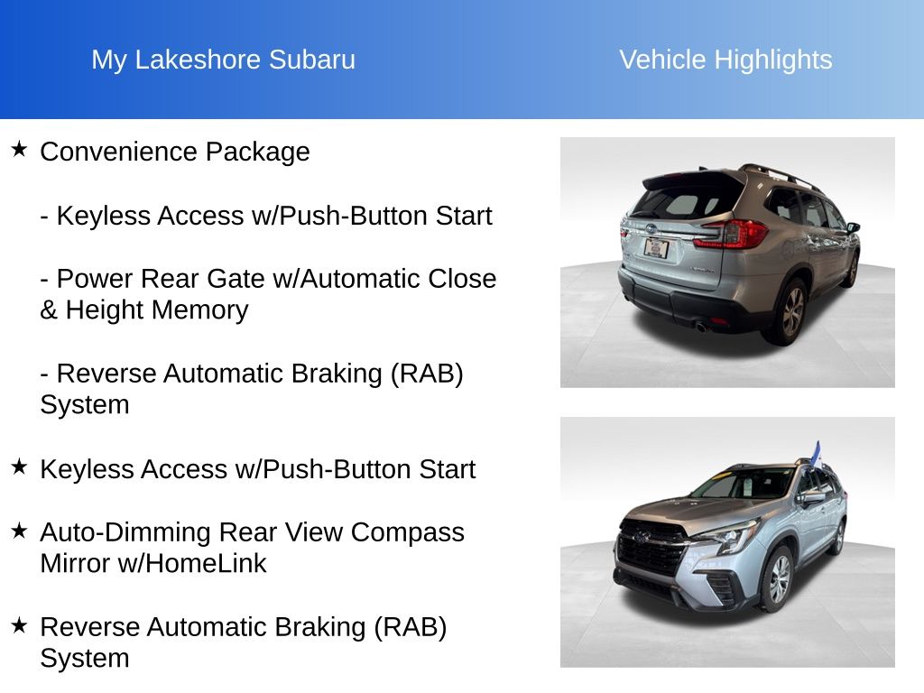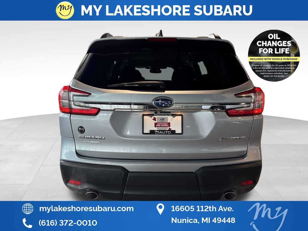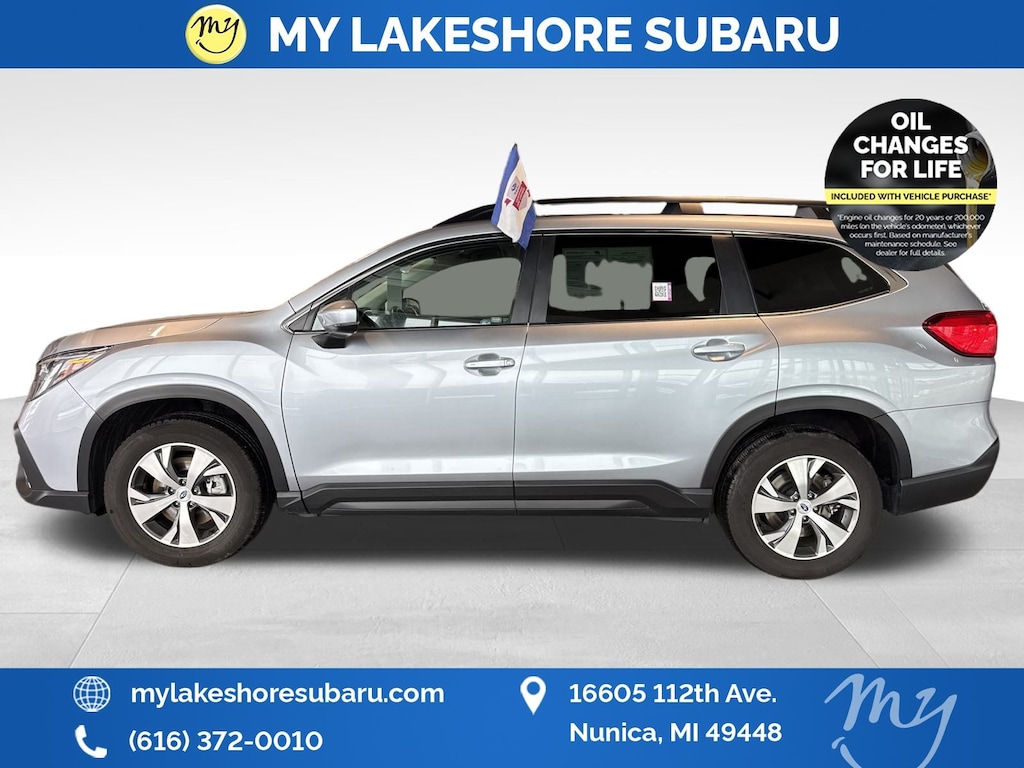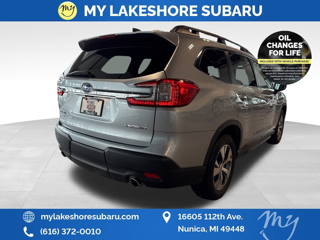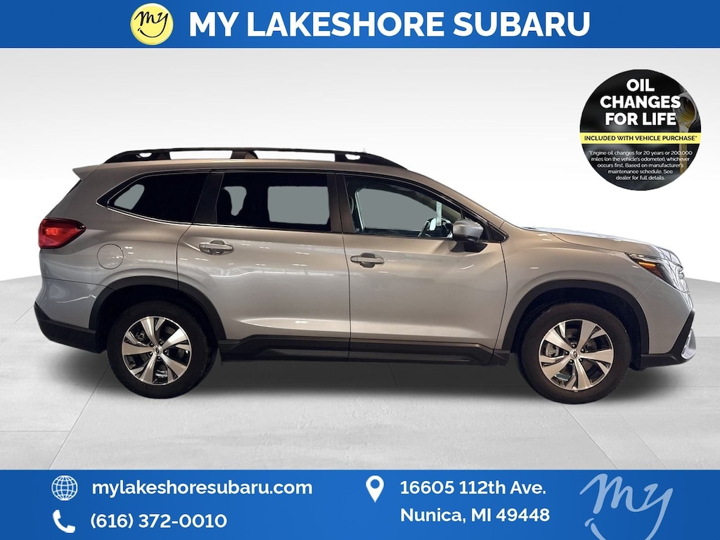 Ascent Premium, Ice Silver Metallic, *ALL WHEEL DRIVE*, *APPLE CARPLAY & ANDROID AUTO*, *EYESIGHT Driver Assist*, *HEATED SEATS*, *LANE DEPARTURE WARNING*, *OIL CHANGES for LIFE*, Auto-Dimming Rear View Compass Mirror w/HomeLink, Convenience Package, Keyless Access w/Push-Button Start, Power Rear Gate w/Automatic Close & Height Memory, Reverse Automatic Braking (RAB) System. Certified. Ice Silver Metallic 2024 Subaru Ascent Premium AWD Lineartronic CVT 2.4L 4-Cylinder DOHC 16V