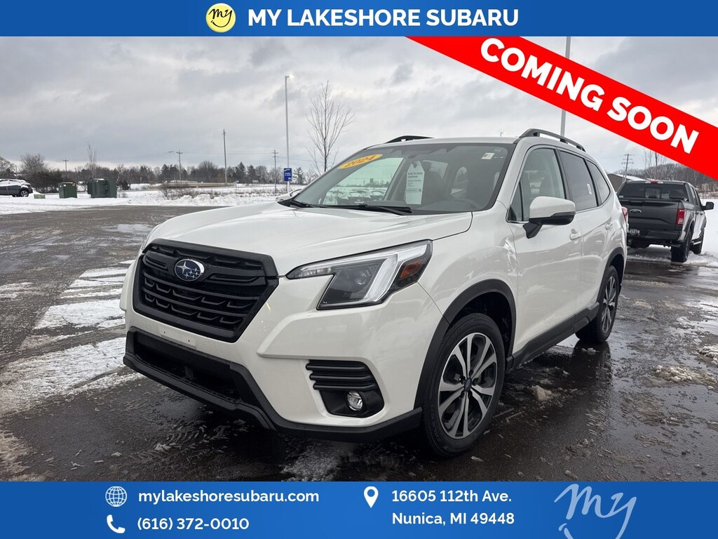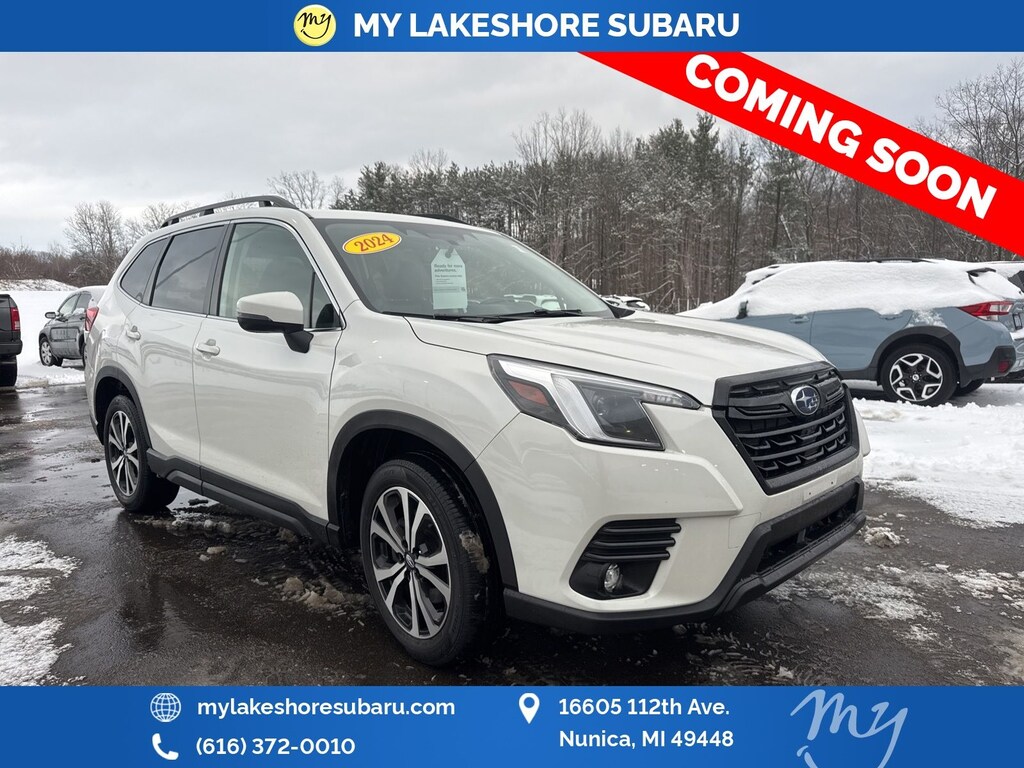 Forester Limited, Crystal White Pearl, *ALL WHEEL DRIVE*, *APPLE CARPLAY & ANDROID AUTO*, *EYESIGHT Driver Assist*, *HEATED STEERING WHEEL*, *LANE DEPARTURE WARNING*, *LEATHER HEATED POWER SEATS*, *OIL CHANGES for LIFE*, *PANORAMIC MOONROOF*, *PREMIUM SOUND*, *REARVIEW CAMERA*, harman/kardon 9-Speaker Audio System, Heated Steering Wheel, Nav & harman/kardon & RAB & Heated Steering Wheel, Radio: Subaru STARLINK 8.0" Multimedia Nav System, Reverse Automatic Braking System (RAB). Certified. Crystal White Pearl 2024 Subaru Forester Limited AWD Lineartronic CVT 2.5L 4-Cylinder DOHC 16V