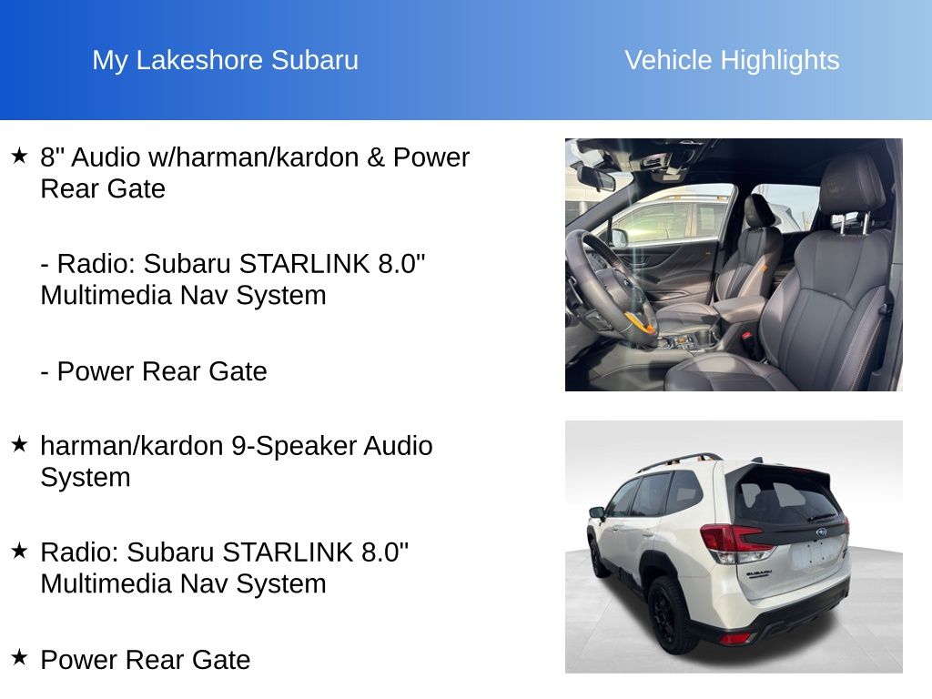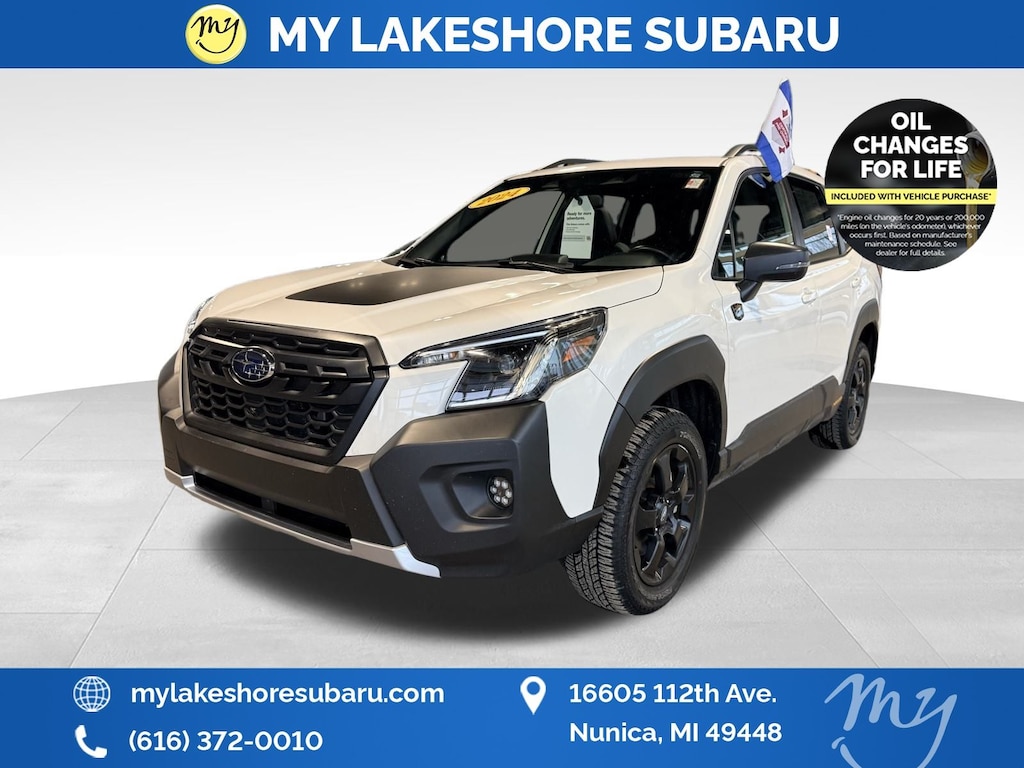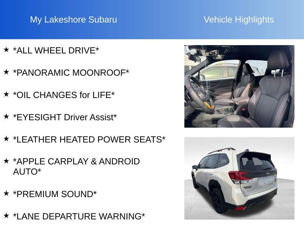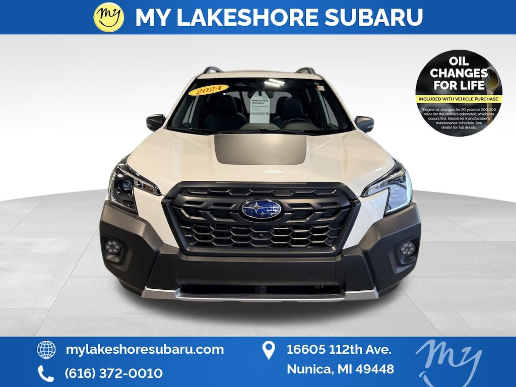 Forester Wilderness, Crystal White Pearl, *ALL WHEEL DRIVE*, *APPLE CARPLAY & ANDROID AUTO*, *EYESIGHT Driver Assist*, *LANE DEPARTURE WARNING*, *LEATHER HEATED POWER SEATS*, *OIL CHANGES for LIFE*, *PANORAMIC MOONROOF*, *PREMIUM SOUND*, 8" Audio w/harman/kardon & Power Rear Gate, harman/kardon 9-Speaker Audio System, Power Rear Gate, Radio: Subaru STARLINK 8.0" Multimedia Nav System. Certified. Crystal White Pearl 2024 Subaru Forester Wilderness AWD Lineartronic CVT 2.5L 4-Cylinder DOHC 16V