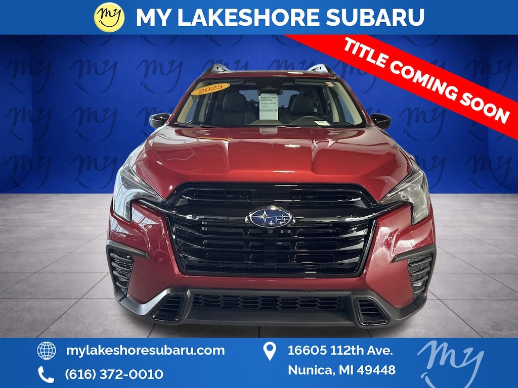 Ascent Onyx Edition Touring, Crimson Red Pearl, *ALL WHEEL DRIVE*, *APPLE CARPLAY & ANDROID AUTO*, *BLIND SPOT ALERT*, *BLIND SPOT MONITORING*, *EYESIGHT Driver Assist*, *HEATED REAR Seats*, *HEATED STEERING WHEEL*, *LANE DEPARTURE WARNING*, *LEATHER HEATED POWER SEATS*, *OIL CHANGES for LIFE*, *PANORAMIC MOONROOF*. Certified. Crimson Red Pearl 2025 Subaru Ascent Onyx Edition Touring AWD Lineartronic CVT 2.4L 4-Cylinder DOHC 16V