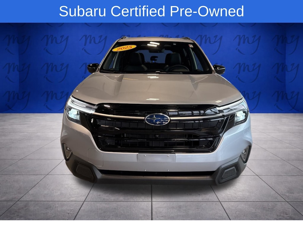 Forester Hybrid Touring, 2.5L 4-Cylinder DOHC 16V, Ice Silver Metallic, *ALL WHEEL DRIVE*, *APPLE CARPLAY & ANDROID AUTO*, *BACKUP CAMERA*, *BLIND SPOT ALERT*, *BLIND SPOT MONITORING*, *EYESIGHT Driver Assist*, *HEATED STEERING WHEEL*, *LANE DEPARTURE WARNING*, *LEATHER HEATED POWER SEATS*, *OIL CHANGES for LIFE*, *PANORAMIC MOONROOF*, *PREMIUM SOUND*. Certified. Ice Silver Metallic 2025 Subaru Forester Hybrid Touring AWD Lineartronic CVT 2.5L 4-Cylinder DOHC 16V