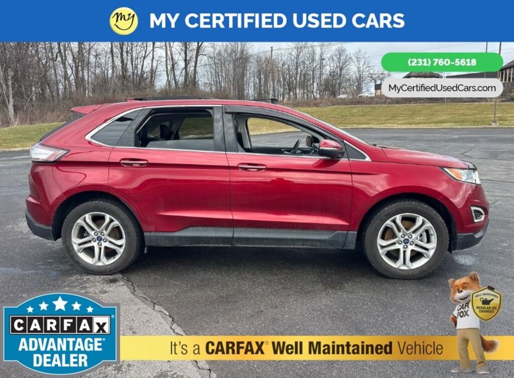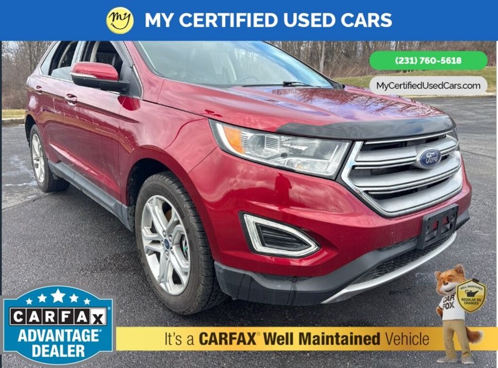 *FULLY SERVICED* ***2018 FORD EDGE TITANIUM AWD***, *VERY CLEAN* *REMOTE START* **COLD WEATHER PACKAGE**, *LEATHER HEATED POWER SEATS*, *HEATED STEERING WHEEL* **POWER LIFT GATE**, *BACKUP SENSORS*, *NAVIGATION SYSTEM*, *PANORAMIC MOONROOF*, *PREMIUM SOUND*, *REARVIEW CAMERA*, *APPLE CARPLAY & ANDROID AUTO* MY Certified Used Cars of Muskegon is your #1 choice in Michigan to get the BEST PRICE on used vehicles and BEST value for your trade. The MY Certified Used Cars team is ready to provide you with a world-class experience, ensuring that you find the perfect vehicle that fits all your needs. Every vehicle has been through a full safety inspection completed by certified technicians and fully detailed. We sell many makes and models, Pre-Owned Vehicles with years from 2025-2024-2023-2022-2021-2020-2019-2018-2017-2016-2015-2014-2013-2012-2011-2010-2009-2008-2007 and all makes Audi, BMW, Chevrolet, Toyota, Volkswagen, Kia, Hyundai, Mercedes, Dodge, Chrysler, Jeep, Ram, Lincoln, Honda, Subaru, and many models like Bronco, Bronco Sport, Edge, Escapes, Expedition, Explorer, Fusions, Focus, Flex, F-150 Series, F-250, F-350, Super Duty Diesel Trucks, Maverick, Mustang MACH-E, Mustang, Ranger, Transit, Wrangler, Grand Cherokee, Grand Cherokee L, Wagoneer, Gladiator, Grand Caravan, RAM, RAM HEMI, and more. Take advantage of our VIP experience by calling 231-760-5618 to schedule a test drive. Read our customer reviews at www.mycertifiedusedcars.com/testimonials or view our entire selection of preowned vehicles at www.mycertifiedusedcars.com, or stop by today, located at 3692 Airline Rd. Muskegon, MI 49444. New Price! Ruby Red 2018 Ford Edge Titanium AWD 6-Speed Automatic 3.5L V6 Ti-VCT