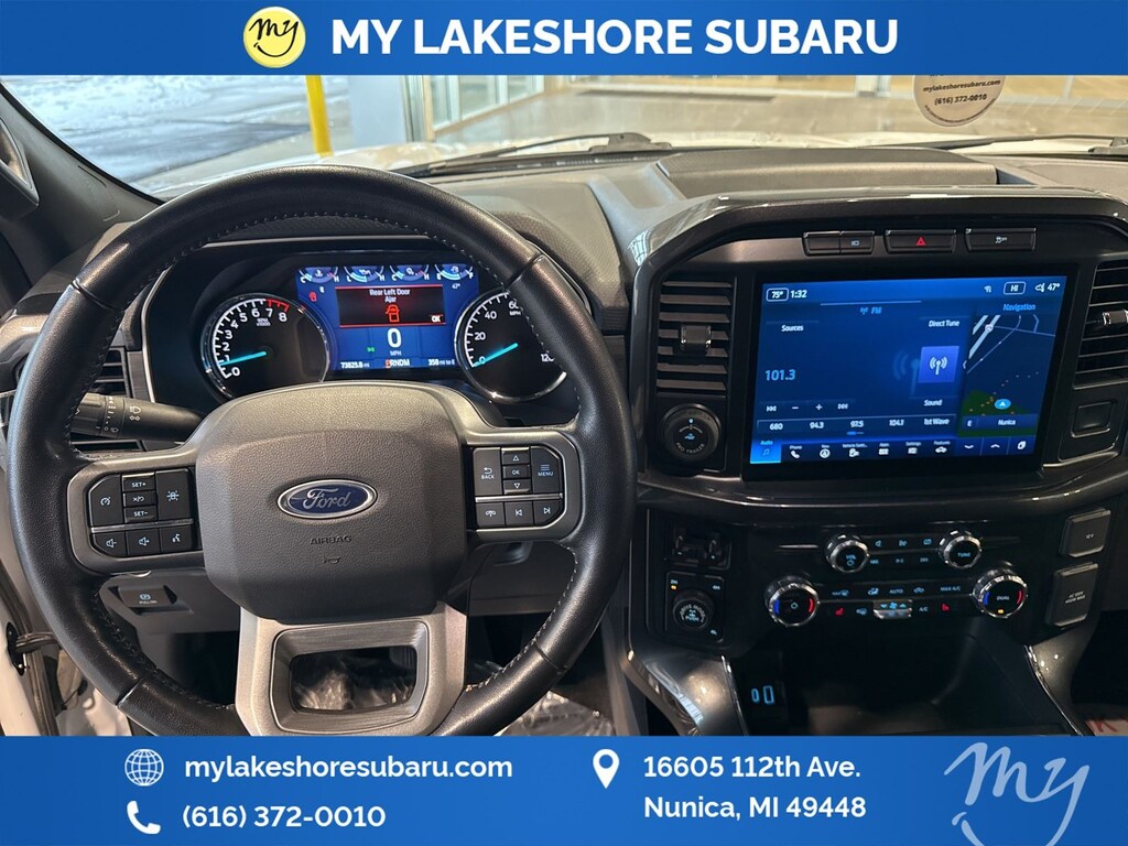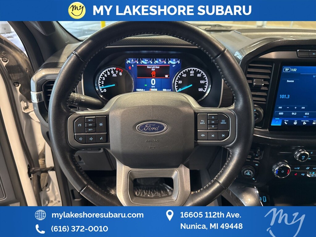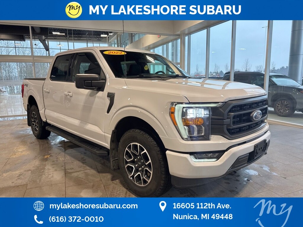 F-150 XLT, 5.0L V8, 4WD, *BACKUP SENSORS*, *BLIND SPOT MONITORING*, *LANE DEPARTURE WARNING*, *OIL CHANGES for LIFE*, 10-Way Power Driver & Passenger Seats, 2-Bar Style Grille w/Chrome 2 Minor Bars, 8" Productivity Screen in Instrument Cluster, ABS brakes, Accent-Color Step Bars, Alloy wheels, Auto-Dimming Rear-View Mirror, Black 2-Bar Style Grille w/Black Surround/Accents, Body-Color Door & Tailgate Handles, Body-Color Front & Rear Bumpers, Box Side Decals, Bright Polished Step Bars, Chrome Door & Tailgate Handles w/Body-Color Bezel, Chrome Single-Tip Exhaust, Class IV Trailer Hitch Receiver, Compass, Dual Zone Electronic Automatic Temperature Control, Electronic Stability Control, Equipment Group 302A High, GVWR: 7,050 lbs Payload Package, Heated door mirrors, Heated Front Seats, Illuminated entry, Integrated Trailer Brake Controller, Intelligent Access w/Push Button Start, Leather-Wrapped Steering Wheel, LED Reflector Headlamps, LED Sideview Mirror Spotlights, Low tire pressure warning, Onboard 400W Outlet, Power Glass Heated Sideview Mirrors, Pro Trailer Backup Assist, Radio: AM/FM SiriusXM w/360L, Rear Under-Seat Storage, Remote keyless entry, Remote Start System w/Remote Tailgate Release, SecuriCode Drivers Side Keyless-Entry Keypad, SYNC 4 w/Enhanced Voice Recognition, Traction control, Trailer Tow Package, Unique Sport Cloth 40/Console/40 Front-Seats, Wheels: 18" 6-Spoke Machined Aluminum, Wheels: 18" Chrome-Like PVD, XLT Chrome Appearance Package, XLT Sport Appearance Package, Zone Lighting. Oxford White 2022 Ford F-150 XLT 4WD 10-Speed Automatic 5.0L V8