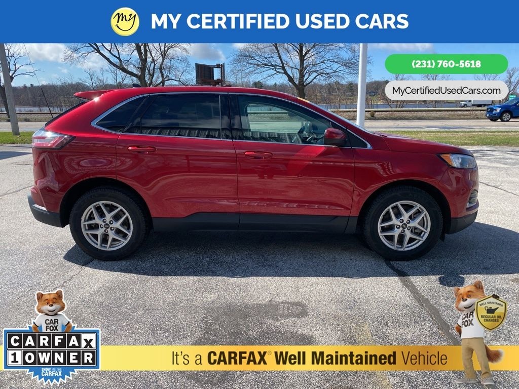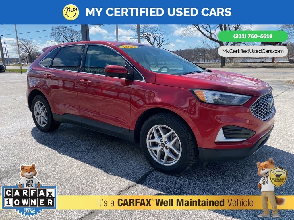 *SUPER BUY* ***2024 FORD EDGE SEL AWD*** ***ONE OWNER***, *VERY CLEAN* *LEATHER HEATED POWER SEATS* **ADVANCEDTRAC WITH RSC**, **Ford Co-Pilot360**, *APPLE CARPLAY & ANDROID AUTO*, *BACKUP SENSORS*, *BLIND SPOT MONITORING SYSTEM*, *HANDSFREE BLUETOOTH*, *REARVIEW CAMERA*, Adaptive Cruise Control w/Stop & Go, Cargo Accessory Package, Cargo Mat, Connected Navigation, Evasive Steering Assist, Ford Co-Pilot360 Assist+, Lane Centering, Leather-Wrapped Steering Wheel, Power Liftgate, Rear Bumper Protector, Retractable Cargo Area Cover. MY Certified Used Cars of Muskegon is your #1 choice in Michigan to get the BEST PRICE on used vehicles and BEST value for your trade. The MY Certified Used Cars team is ready to provide you with a world-class experience, ensuring that you find the perfect vehicle that fits all your needs. Every vehicle has been through a full safety inspection completed by certified technicians and fully detailed. We sell many makes and models, Pre-Owned Vehicles with years from 2025-2024-2023-2022-2021-2020-2019-2018-2017-2016-2015-2014-2013-2012-2011-2010-2009-2008-2007 and all makes Audi, BMW, Chevrolet, Nissan, Toyota, Volkswagen, Kia, Hyundai, Mercedes, Dodge, Chrysler, Jeep, Ram, Lincoln, Honda, Subaru, and many models like Bronco, Bronco Sport, Edge, Escapes, Expedition, Explorer, Fusions, Focus, Flex, F-150 Series, F-250, F-350, Super Duty Diesel Trucks, Maverick, Altima, RAV4, 4 Runner, Mustang, Ranger, Transit, Wrangler, Grand Cherokee, Grand Cherokee L, Wagoneer, Gladiator, Grand Caravan, RAM, RAM HEMI, and more. Take advantage of our VIP experience by calling 231-760-5618 to schedule a test drive. Read our customer reviews at www.mycertifiedusedcars.com/testimonials or view our entire selection of preowned vehicles at www.mycertifiedusedcars.com, or stop by today, located at 3692 Airline Rd. Muskegon, MI 49444. CARFAX One-Owner. Red Metallic 2024 Ford Edge SEL AWD 8-Speed Automatic EcoBoost 2.0L I4 GTDi DOHC Turbocharged VCT