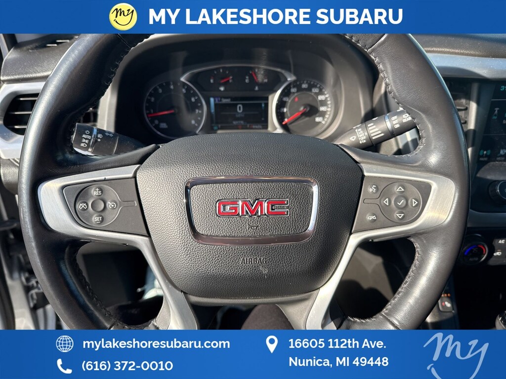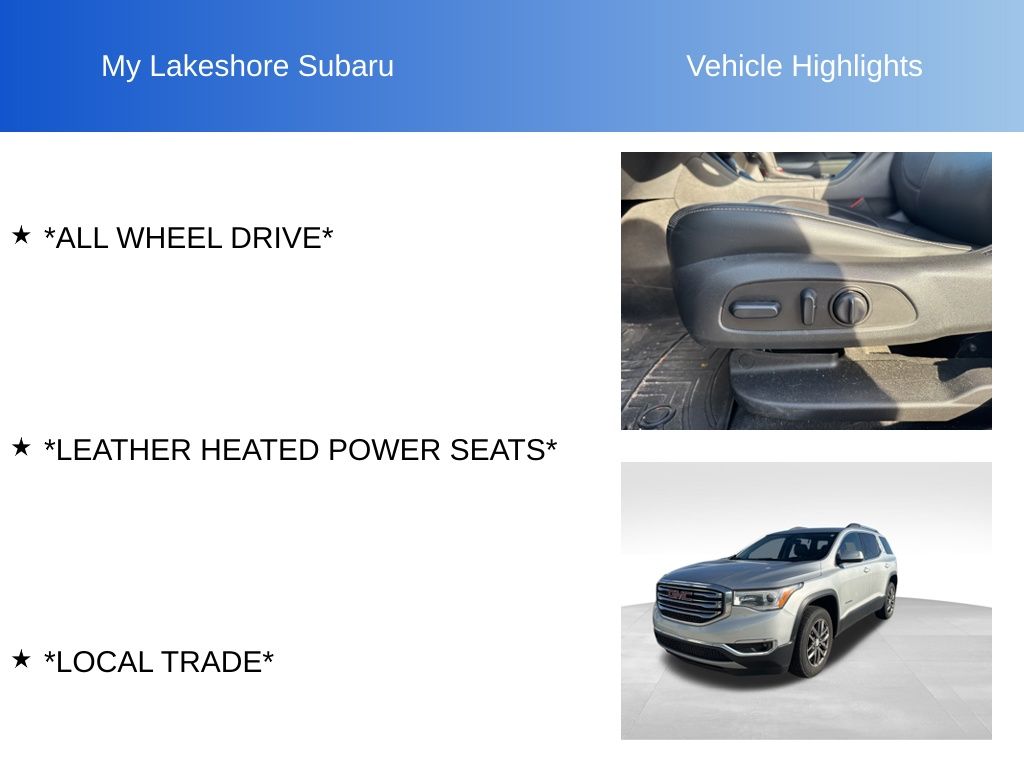 Acadia SLT-1, AWD, Jet Black w/Perforated Leather-Appointed Seat Trim, *ALL WHEEL DRIVE*, *LEATHER HEATED POWER SEATS*, *LOCAL TRADE*. Quicksilver Metallic 2019 GMC Acadia SLT-1 AWD 6-Speed Automatic 3.6L V6 SIDI