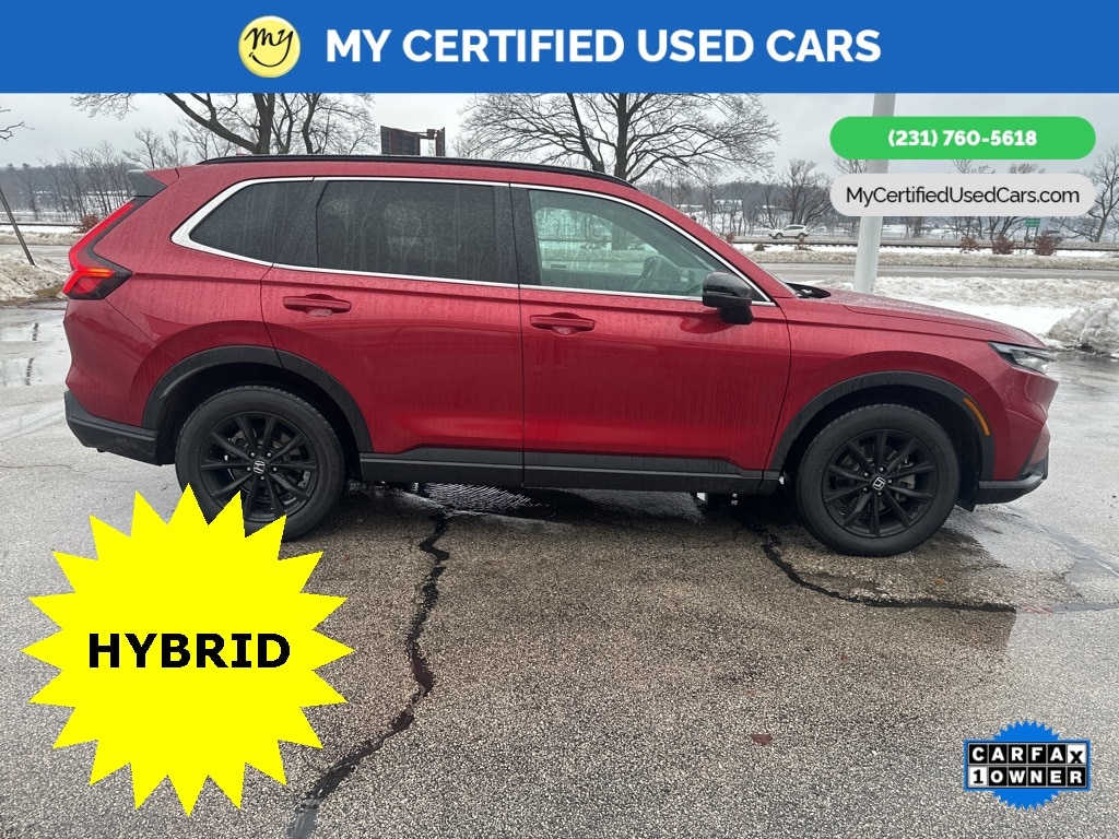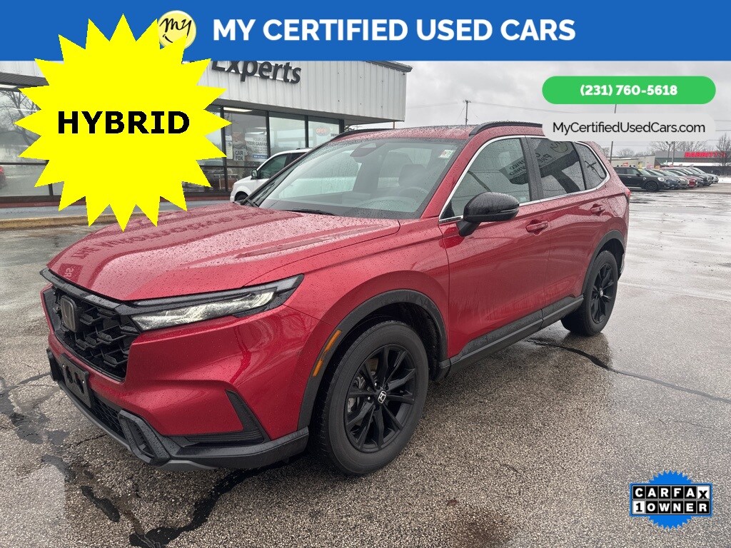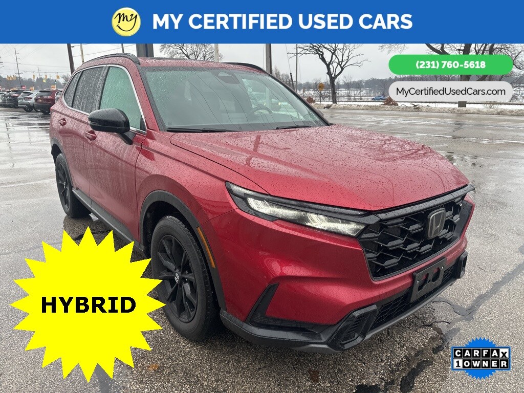 *SUPER BUY* ***2023 HONDA CR-V HYBRID SPORT AWD***, *VERY CLEAN* *FULLY SERVICED* *HEATED SEATS*, *HANDSFREE BLUETOOTH*, *LANE DEPARTURE WARNING*, *MOONROOF*, *NAVIGATION SYSTEM*, *REARVIEW CAMERA* *ADAPTIVE CRUISE*, *APPLE CARPLAY & ANDROID AUTO*, Adaptive Cruise Control: Adaptive Cruise Control (ACC) with Low-Speed Follow, Auto High-beam Headlights, Blind Spot Information (BSI) System warning, Brake assist, Electronic Stability Control, Exterior Parking Camera Rear, Front dual zone A/C, Heated Front Bucket Seats, Power moonroof, Wheels: 18" Berlina Black Alloy. MY Certified Used Cars of Muskegon is your #1 choice in Michigan to get the BEST PRICE on used vehicles and BEST value for your trade. The MY Certified Used Cars team is ready to provide you with a world-class experience, ensuring that you find the perfect vehicle that fits all your needs. Every vehicle has been through a full safety inspection completed by certified technicians and fully detailed. We sell many makes and models, Pre-Owned Vehicles with years from 2025-2024-2023-2022-2021-2020-2019-2018-2017-2016-2015-2014-2013-2012-2011-2010-2009-2008-2007 and all makes Audi, BMW, Chevrolet, Toyota, Volkswagen, Kia, Hyundai, Mercedes, Dodge, Chrysler, Jeep, Ram, Lincoln, Honda, Subaru, and many models like Bronco, Bronco Sport, Edge, Escapes, Expedition, Explorer, Fusions, Focus, Flex, F-150 Series, F-250, F-350, Super Duty Diesel Trucks, Maverick, Mustang MACH-E, Mustang, Ranger, Transit, Wrangler, Grand Cherokee, Grand Cherokee L, Wagoneer, Gladiator, Grand Caravan, RAM, RAM HEMI, and more. Take advantage of our VIP experience by calling 231-760-5618 to schedule a test drive. Read our customer reviews at www.mycertifiedusedcars.com/testimonials or view our entire selection of preowned vehicles at www.mycertifiedusedcars.com, or stop by today, located at 3692 Airline Rd. Muskegon, MI 49444. New Price! CARFAX One-Owner. Red 2023 Honda CR-V Hybrid Sport AWD eCVT 2.0L I4 DOHC 16V