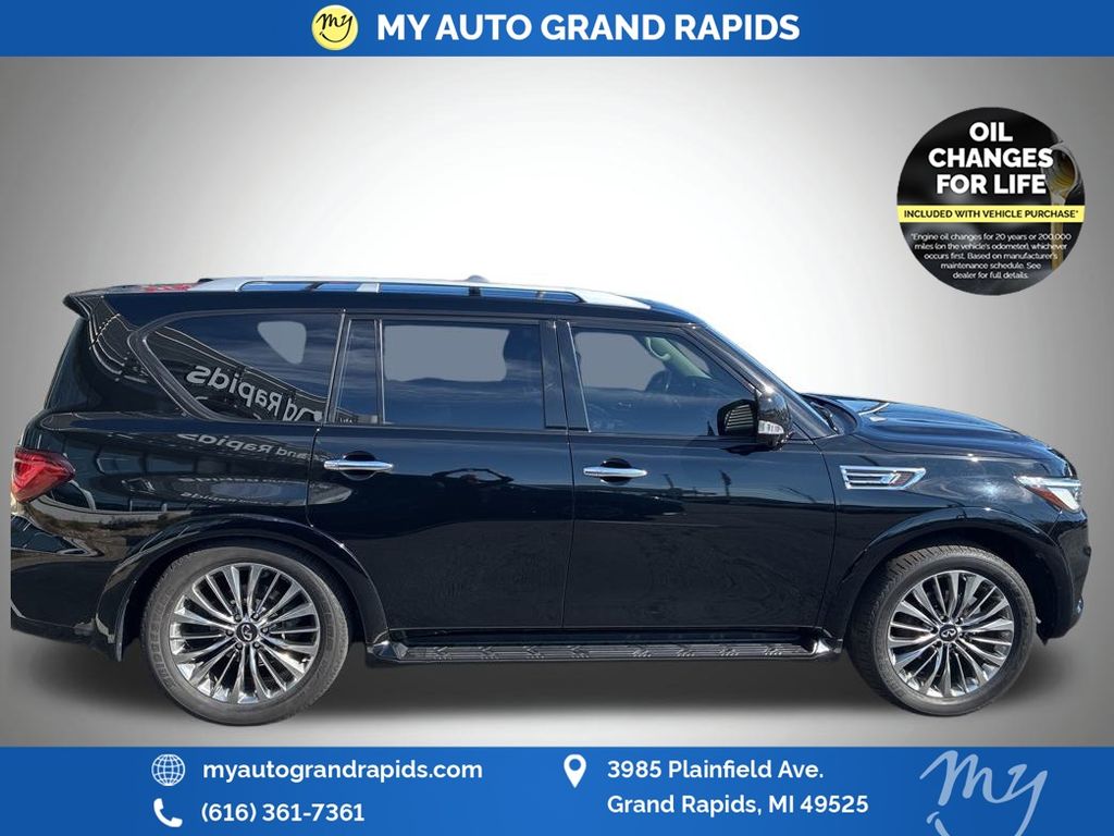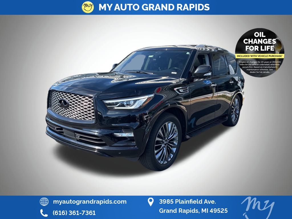 Black Obsidian 2020 INFINITI QX80 LUXE 5.6L V8 4WD Odometer is 1413 miles below market average!
