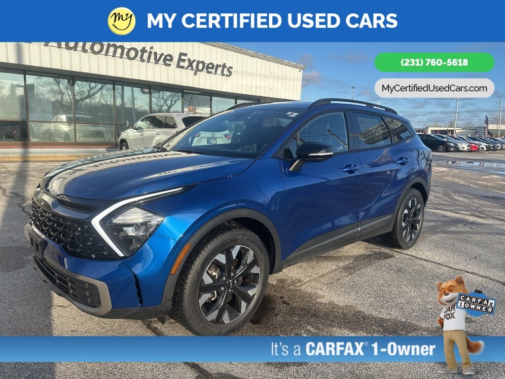 ***ONE OWNER*** *FULLY SERVICED* ***2023 KIA SPORTAGE X-LINE AWD*** *SUPER BUY*, *VERY CLEAN* **REMOTE START** *LEATHER HEATED POWER SEATS* **WIRELESS PHONE CHARGER**, *BACKUP SENSORS*, *BLIND SPOT MONITORING SYSTEM*, *HANDSFREE BLUETOOTH*, *LANE DEPARTURE WARNING*, *NAVIGATION SYSTEM*, *PANORAMIC MOONROOF*, *REARVIEW CAMERA*, *ADAPTIVE CRUISE*, *APPLE CARPLAY & ANDROID AUTO* LED Interior Lighting, Navigation System, Panoramic Sunroof, Smart Power Liftgate, X-Line Premium Package. MY Certified Used Cars of Muskegon is your #1 choice in Michigan to get the BEST PRICE on used vehicles and BEST value for your trade. The MY Certified Used Cars team is ready to provide you with a world-class experience, ensuring that you find the perfect vehicle that fits all your needs. Every vehicle has been through a full safety inspection completed by certified technicians and fully detailed. We sell many makes and models, Pre-Owned Vehicles with years from 2025-2024-2023-2022-2021-2020-2019-2018-2017-2016-2015-2014-2013-2012-2011-2010-2009-2008-2007 and all makes Audi, BMW, Chevrolet, Toyota, Volkswagen, Kia, Hyundai, Mercedes, Dodge, Chrysler, Jeep, Ram, Lincoln, Honda, Subaru, and many models like Bronco, Bronco Sport, Edge, Escapes, Expedition, Explorer, Fusions, Focus, Flex, F-150 Series, F-250, F-350, Super Duty Diesel Trucks, Maverick, Mustang MACH-E, Mustang, Ranger, Transit, Wrangler, Grand Cherokee, Grand Cherokee L, Wagoneer, Gladiator, Grand Caravan, RAM, RAM HEMI, and more. Take advantage of our VIP experience by calling 231-760-5618 to schedule a test drive. Read our customer reviews at www.mycertifiedusedcars.com/testimonials or view our entire selection of preowned vehicles at www.mycertifiedusedcars.com, or stop by today, located at 3692 Airline Rd. Muskegon, MI 49444. CARFAX One-Owner. Sapphire Blue 2023 Kia Sportage X-Line AWD 8-Speed Automatic I4 Clean CARFAX.