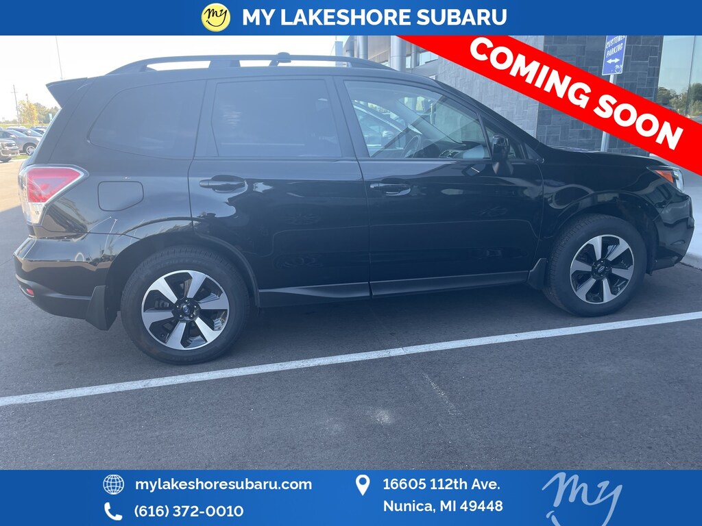 Forester 2.5i Premium, Crystal Black Silica, *ALL WHEEL DRIVE*, *HEATED SEATS*, *LOCAL TRADE*, *OIL CHANGES for LIFE*, *PANORAMIC MOONROOF*. Crystal Black Silica 2017 Subaru Forester 2.5i Premium AWD Lineartronic CVT 2.5L 4-Cylinder DOHC 16V VVT