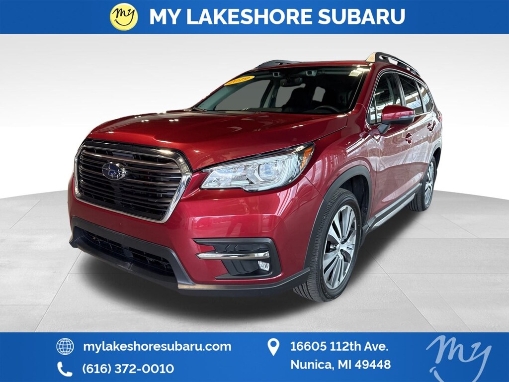 Ascent Limited, AWD, *ALL WHEEL DRIVE*, *APPLE CARPLAY & ANDROID AUTO*, *EYESIGHT Driver Assist*, *HEATED REAR Seats*, *HEATED STEERING WHEEL*, *LANE DEPARTURE WARNING*, *LEATHER HEATED POWER SEATS*, *LOCAL TRADE*. Crimson Red Pearl 2019 Subaru Ascent Limited AWD Lineartronic CVT 2.4L DOHC