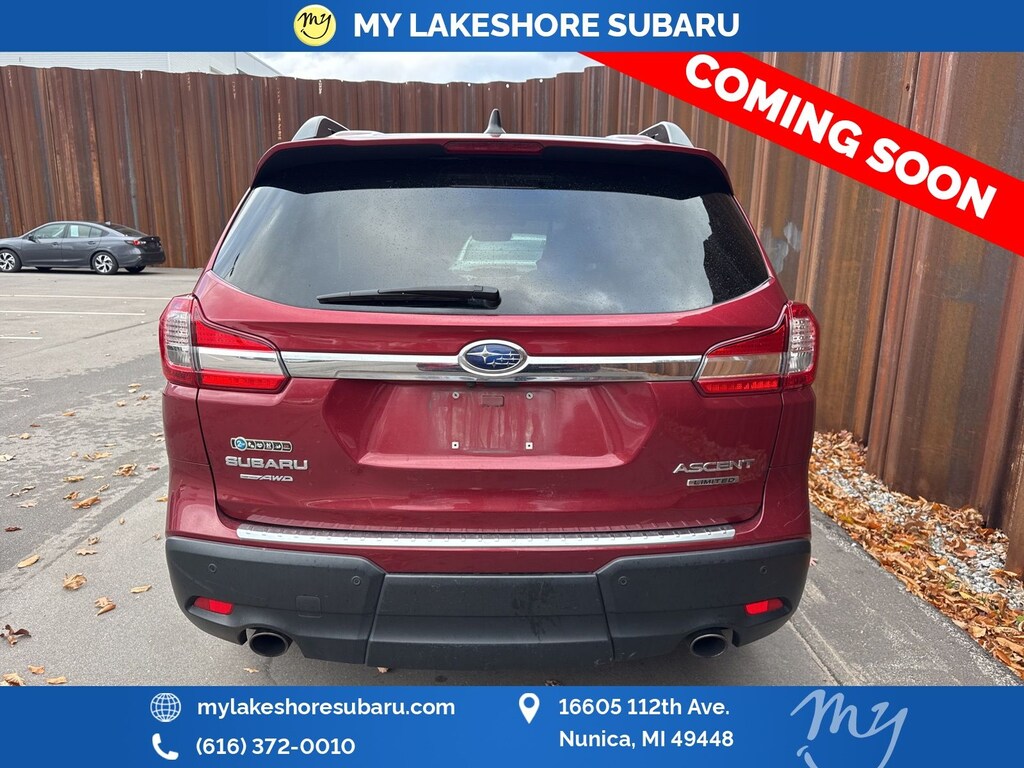 Ascent Limited, Crimson Red Pearl, *ALL WHEEL DRIVE*, *APPLE CARPLAY & ANDROID AUTO*, *EYESIGHT Driver Assist*, *LANE DEPARTURE WARNING*, *LEATHER HEATED POWER SEATS*, *LOCAL TRADE*, *PANORAMIC MOONROOF*, *PREMIUM SOUND*, Cargo Area Cover, Dual Glass Panoramic Power Moonroof, harman kardon & Moonroof & Nav & Cargo Area Cover, Radio: Subaru STARLINK 8.0" Multimedia Nav System. Crimson Red Pearl 2019 Subaru Ascent Limited AWD Lineartronic CVT 2.4L DOHC