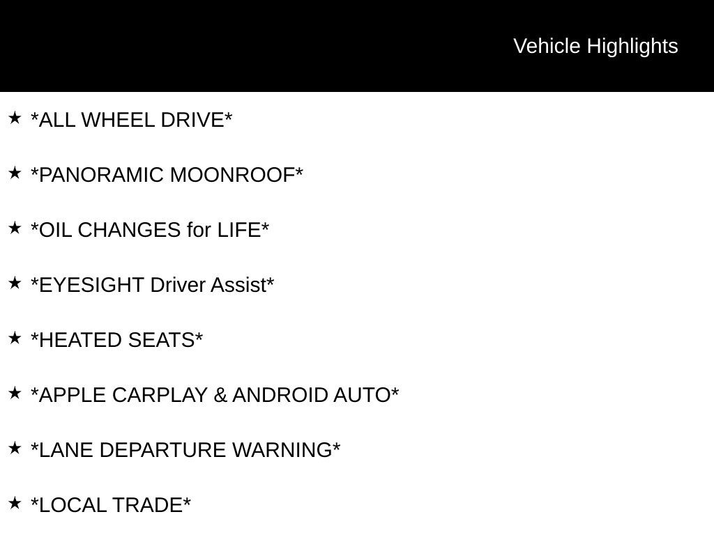 My Lakeshore Subaru is your #1 choice in Michigan to get the BEST PRICE on used vehicles and BEST value for your trade. The My Lakeshore Subaru team is ready to provide you with a world-class experience, ensuring that you find the perfect vehicle that fits all your needs. Every vehicle has been through a full safety inspection completed by certified technicians and fully detailed. We sell many makes and models, Certified Pre-owned Subaruâs and Pre-owned Vehicles with years from 2025-2024-2023-2022-2021-2020-2019-2018-2017-2016-2015-2014-2013-2012-2011-2010-2009-2008-2007 and all makes Audi, BMW, Chevrolet, Toyota, Volkswagen, Kia, Hyundai, Mazda, Mercedes, Dodge, Chrysler, Jeep, Ram, Lincoln, Honda, Subaru, and many models like Crosstrek, Outback, Forester, Accent, Legacy, WRX, BRZ, Solterra, and more. Take advantage of our VIP experience by calling 231-867-6957 to schedule a test drive. Read our customer reviews and view our entire selection of preowned vehicles at www.mylakeshoresubaru.com, or stop by today, located at 16605 112th Ave, Nunica, MI 49448. Recent Arrival! 26/33 City/Highway MPG