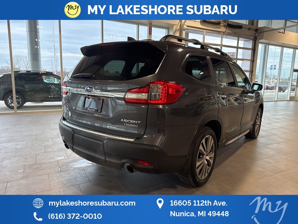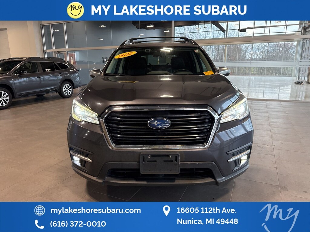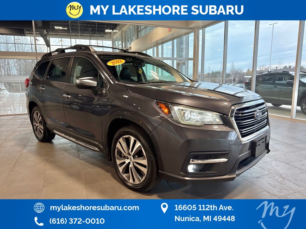 Ascent Touring, Magnetite Gray Metallic, *ALL WHEEL DRIVE*, *APPLE CARPLAY & ANDROID AUTO*, *BLIND SPOT MONITORING*, *EYESIGHT Driver Assist*, *HEATED STEERING WHEEL*, *LANE DEPARTURE WARNING*, *LEATHER HEATED POWER SEATS*, *LOCAL TRADE*, *OIL CHANGES for LIFE*, *PANORAMIC MOONROOF*, harman/kardon® Speakers. Magnetite Gray Metallic 2022 Subaru Ascent Touring AWD Lineartronic CVT 2.4L 4-Cylinder DOHC 16V