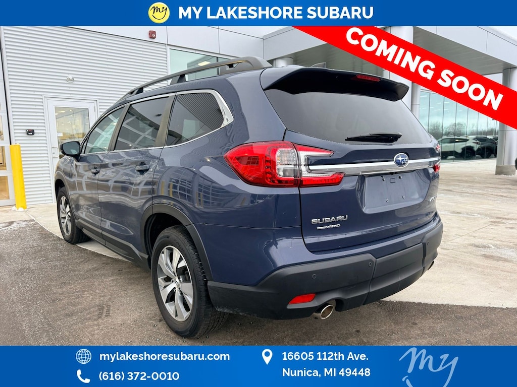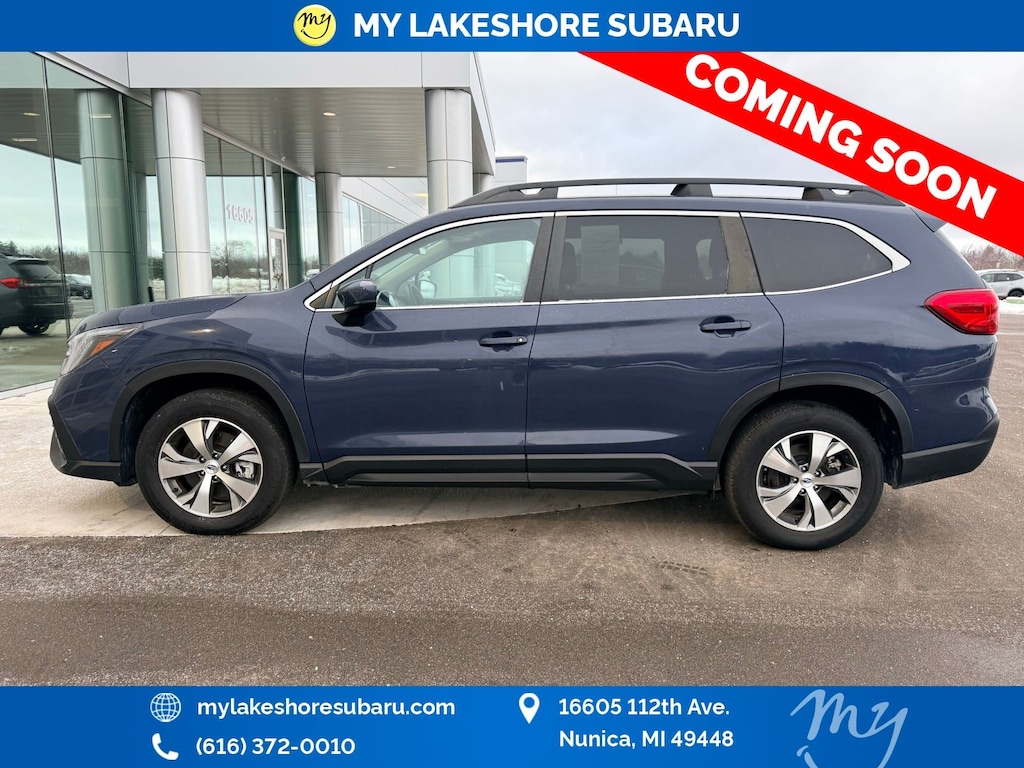 Ascent Premium, Cosmic Blue Pearl, *ALL WHEEL DRIVE*, *APPLE CARPLAY & ANDROID AUTO*, *BACKUP CAMERA*, *EYESIGHT Driver Assist*, *HEATED SEATS*, *LANE DEPARTURE WARNING*, *OIL CHANGES for LIFE*, Auto-Dimming Rear View Compass Mirror w/HomeLink, Convenience Package, Keyless Access w/Push-Button Start, Power Rear Gate w/Automatic Close & Height Memory, Reverse Automatic Braking (RAB) System. Certified. Cosmic Blue Pearl 2024 Subaru Ascent Premium AWD Lineartronic CVT 2.4L 4-Cylinder DOHC 16V