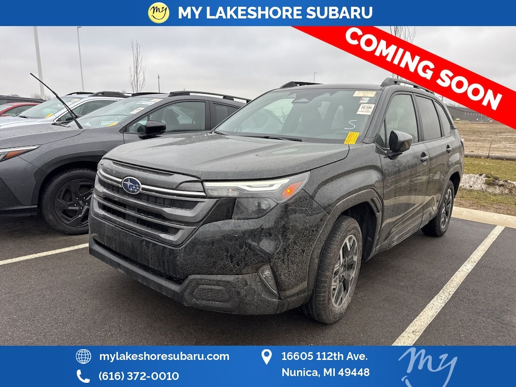 Forester Premium, Crystal Black Silica, *ALL WHEEL DRIVE*, *APPLE CARPLAY & ANDROID AUTO*, *BLIND SPOT ALERT*, *EYESIGHT Driver Assist*, *LANE DEPARTURE WARNING*, *OIL CHANGES for LIFE*, *PANORAMIC MOONROOF*. Certified. Crystal Black Silica 2025 Subaru Forester Premium AWD Lineartronic CVT 2.5L 4-Cylinder DOHC 16V