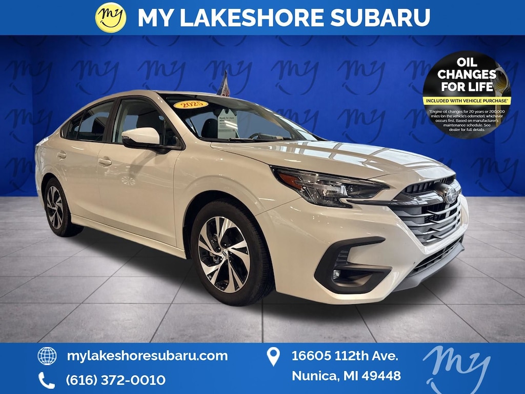 Legacy Premium, Crystal White Pearl, *ALL WHEEL DRIVE*, *APPLE CARPLAY & ANDROID AUTO*, *BACKUP CAMERA*, *EYESIGHT Driver Assist*, *HEATED SEATS*, *LANE DEPARTURE WARNING*, *OIL CHANGES for LIFE*, Blind Spot Detection w/Rear Cross-Traffic Alert, BSD w/RCTA & Keyless Access & LED Fog Lights, Keyless Access w/Push Button Start, LED Fog Lights. Certified. Crystal White Pearl 2025 Subaru Legacy Premium AWD Lineartronic CVT 2.5L 4-Cylinder DOHC 16V