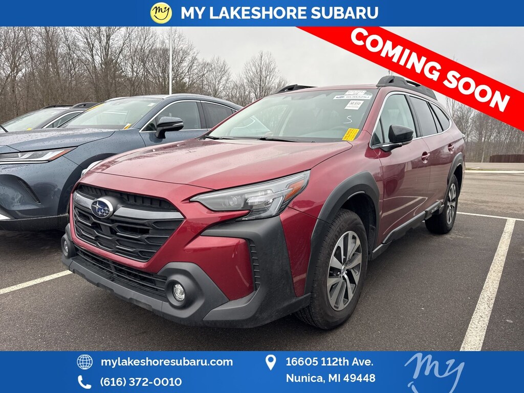 Outback Premium, Crimson Red Pearl, *ALL WHEEL DRIVE*, *APPLE CARPLAY & ANDROID AUTO*, *BACKUP CAMERA*, *BLIND SPOT MONITORING*, *EYESIGHT Driver Assist*, *HEATED SEATS*, *LANE DEPARTURE WARNING*, *MOONROOF*, *OIL CHANGES for LIFE*, Blind Spot Detection (BSD), BSD & RCTA & Keyless Access & Push Button Start, Hands-Free Power Rear Gate, Keyless Access w/Push Button Start, Power Moonroof, Radio: Subaru 11.6" Multimedia System w/Navigation, Rear Cross Traffic Alert (RCTA). Certified. Crimson Red Pearl 2025 Subaru Outback Premium AWD CVT Lineartronic 2.5L 4-Cylinder DOHC 16V