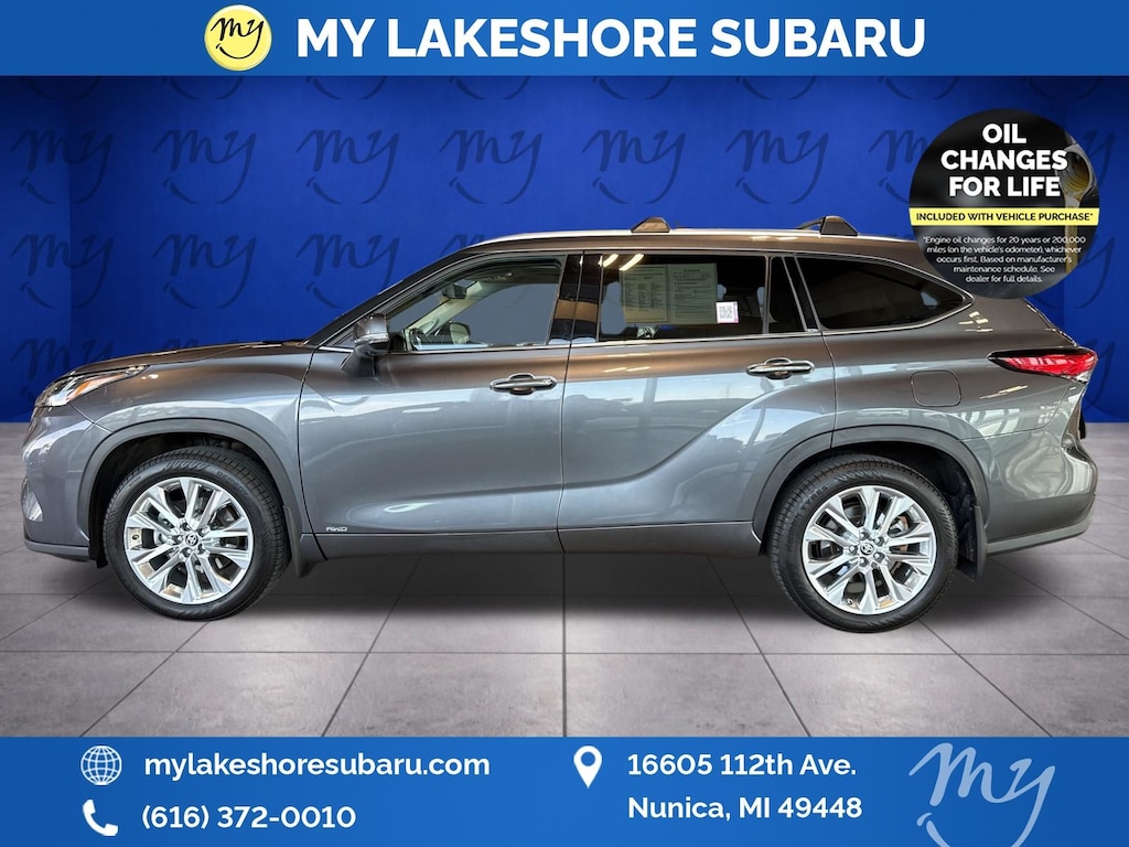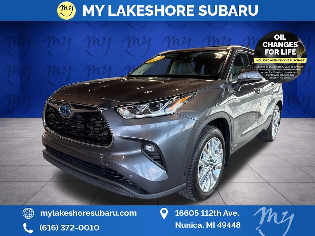 Highlander Hybrid Limited, 2.5L I4 PDI Hybrid DOHC 16V LEV3-SULEV30, Magnetic Gray Metallic, *ALL WHEEL DRIVE*, *APPLE CARPLAY & ANDROID AUTO*, *BACKUP CAMERA*, *BLIND SPOT MONITORING*, *LANE DEPARTURE WARNING*, *LEATHER HEATED POWER SEATS*, *LOCAL TRADE*, *MOONROOF*, *OIL CHANGES for LIFE*. Magnetic Gray Metallic 2023 Toyota Highlander Hybrid Limited AWD eCVT 2.5L I4 PDI Hybrid DOHC 16V LEV3-SULEV30