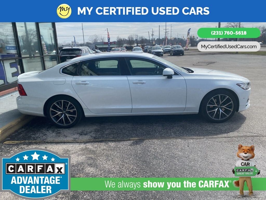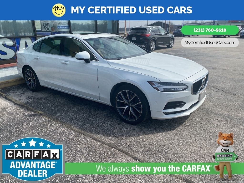 MY Certified Used Cars of Muskegon is your #1 choice in Michigan to get the BEST PRICE on used vehicles and BEST value for your trade. The MY Certified Used Cars team is ready to provide you with a world-class experience, ensuring that you find the perfect vehicle that fits all your needs. Every vehicle has been through a full safety inspection completed by certified technicians and fully detailed. We sell many makes and models, Pre-Owned Vehicles with years from 2025-2024-2023-2022-2021-2020-2019-2018-2017-2016-2015-2014-2013-2012-2011-2010-2009-2008-2007 and all makes Audi, BMW, Chevrolet, Toyota, Volkswagen, Kia, Hyundai, Mercedes, Dodge, Chrysler, Jeep, Ram, Lincoln, Honda, Subaru, and many models like Bronco, Bronco Sport, Edge, Escapes, Expedition, Explorer, Fusions, Focus, Flex, F-150 Series, F-250, F-350, Super Duty Diesel Trucks, Maverick, Mustang MACH-E, Mustang, Ranger, Transit, Wrangler, Grand Cherokee, Grand Cherokee L, Wagoneer, Gladiator, Grand Caravan, RAM, RAM HEMI, and more. Take advantage of our VIP experience by calling 231-760-5618 to schedule a test drive. Read our customer reviews at www.mycertifiedusedcars.com/testimonials or view our entire selection of preowned vehicles at www.mycertifiedusedcars.com, or stop by today, located at 3692 Airline Rd. Muskegon, MI 49444. Crystal White Pearl 2018 Volvo S90 T5 Momentum AWD Automatic with Geartronic 2.0L I4 16V Turbocharged Clean CARFAX.